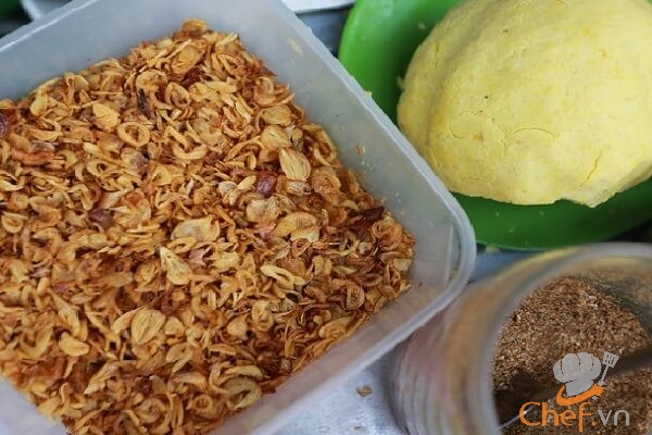 – Bạn dùng mỡ gà, ráng cho đến khi ra hết mỡ rồi cho hành tím vào phi vàng. Tắt bếp thì vớt hành ra ngay để tránh bị cháy.