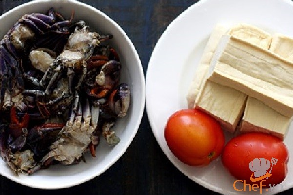 – Cua: sau khi mua về thì bạn rửa thật sạch, gỡ mai, bỏ phần yếm và miệng cua, tách phần gạch cua ra chén để riêng. Với phần cua còn lại thì bạn ướp với ít muối rồi xả dưới nước lần nữa, sau đó giã (hoặc xay) nhuyễn, chắt lấy nước cua.